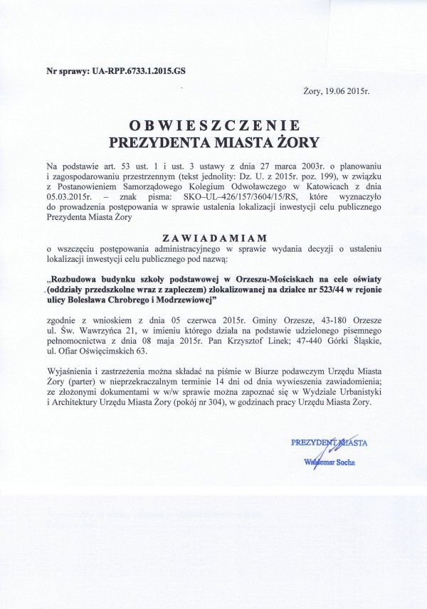 Obwieszczenie Prezydenta Miasta Żory |